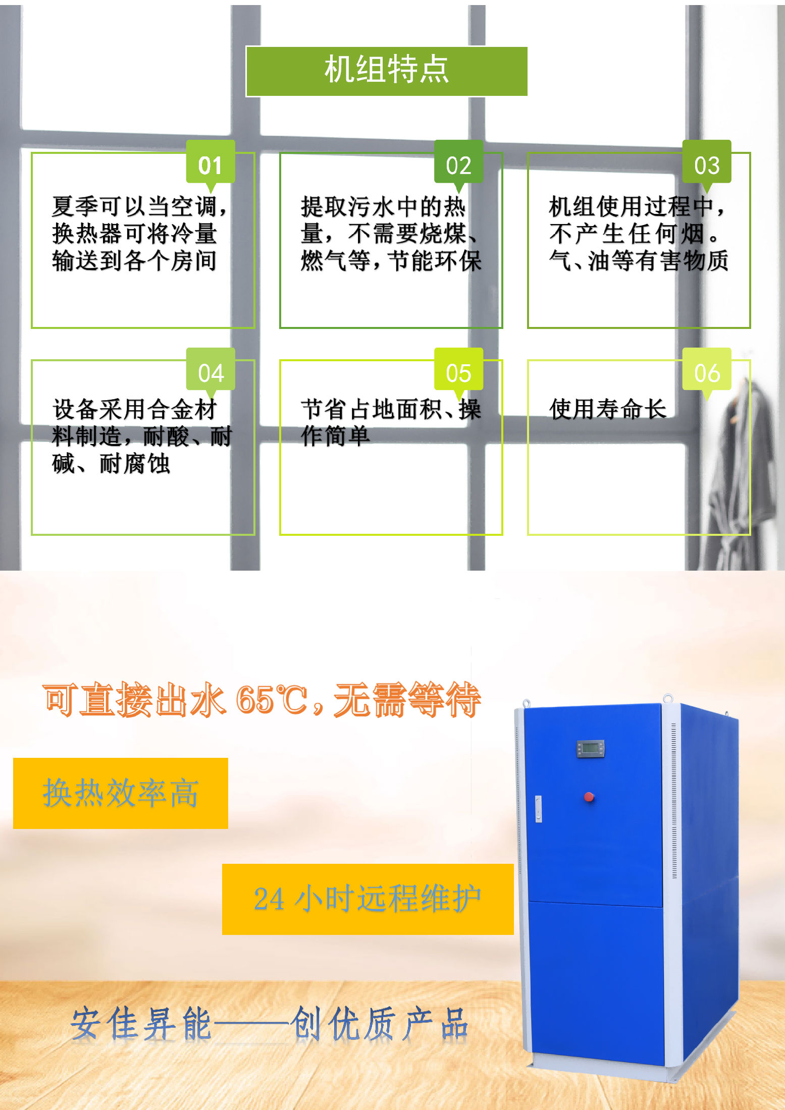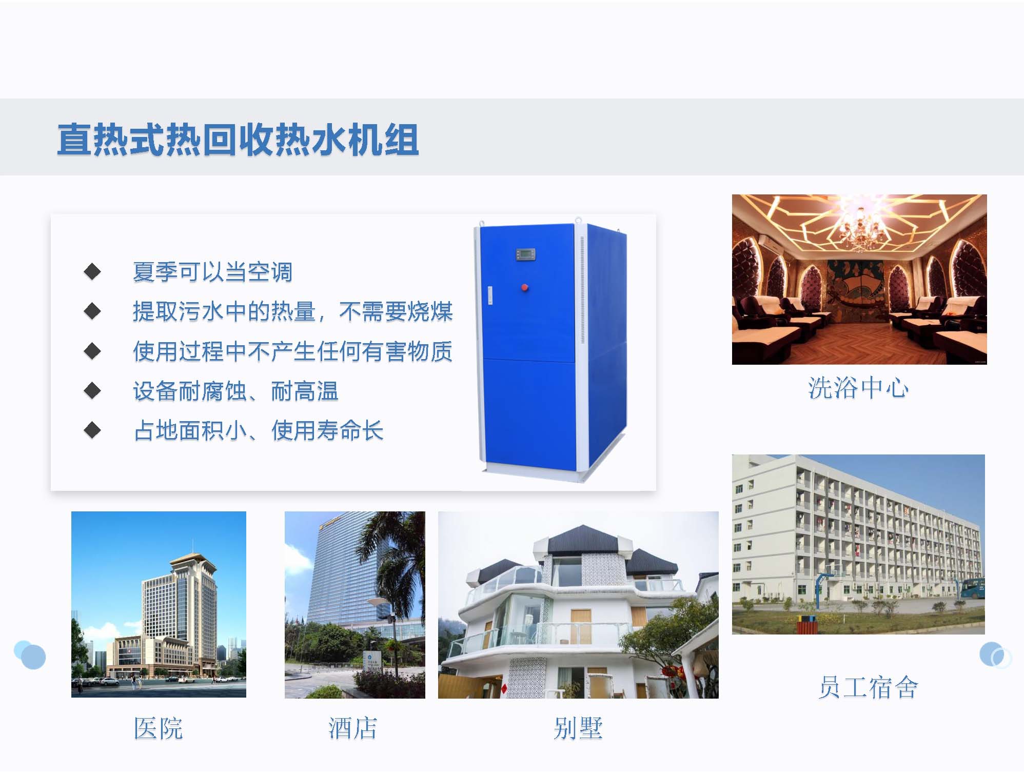 contact us1、直热式热回收热水机组的制热效率远远超过各种锅炉,同时又为空调系统提供冷量,是优秀的锅炉替代品。适用于同时需要冷量和热量的项目。